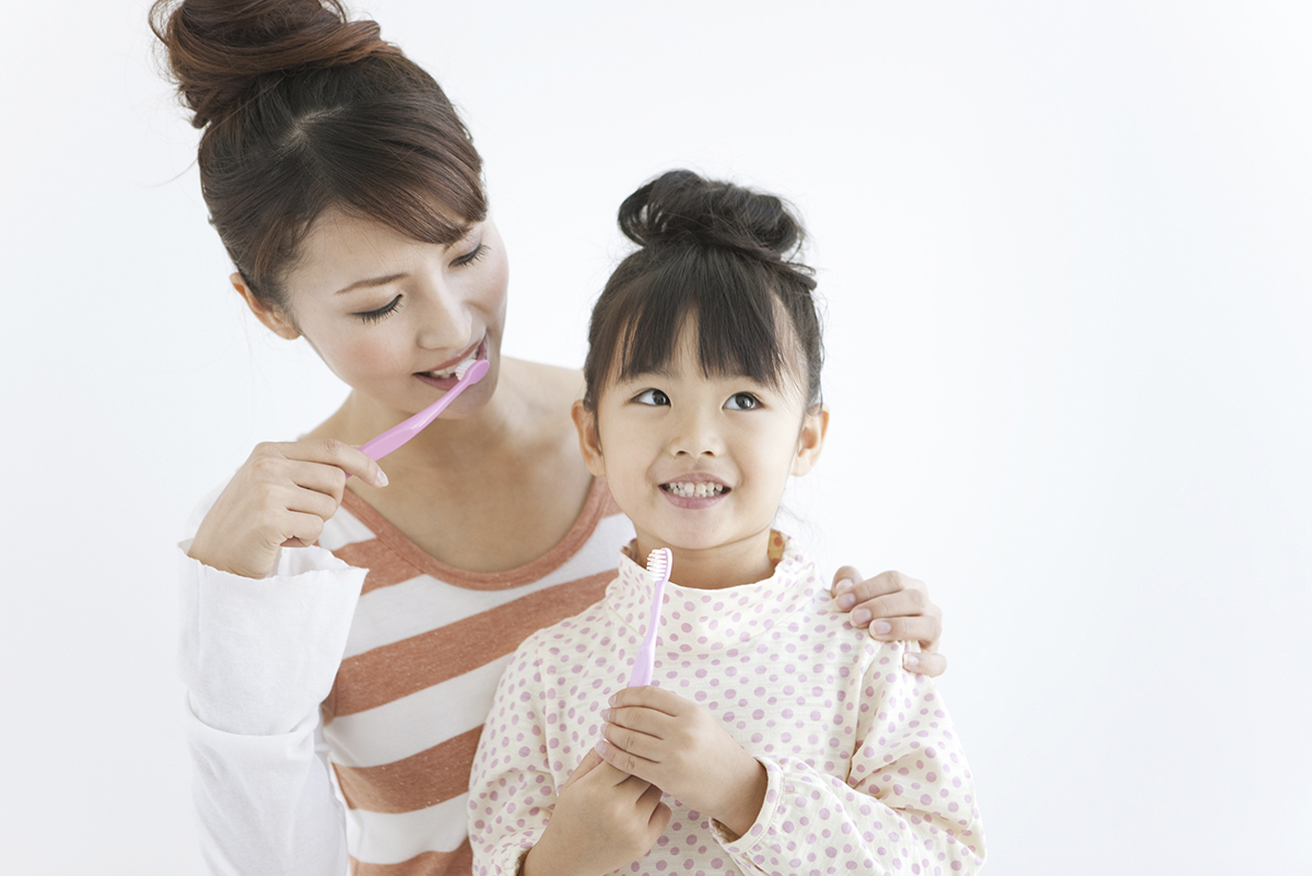 小児歯科でのお子さまへの治療や施術としては、虫歯の治療のほかにブラッシングがあります。当院では、歯科衛生士がお子さまの年齢に応じてブラッシングの仕方を教えたり、親御さまに仕上げ磨きの方法を教えたりしています。虫歯リスクが高い場合はフッ素塗布を行い、歯質を強化することもお勧めです。
